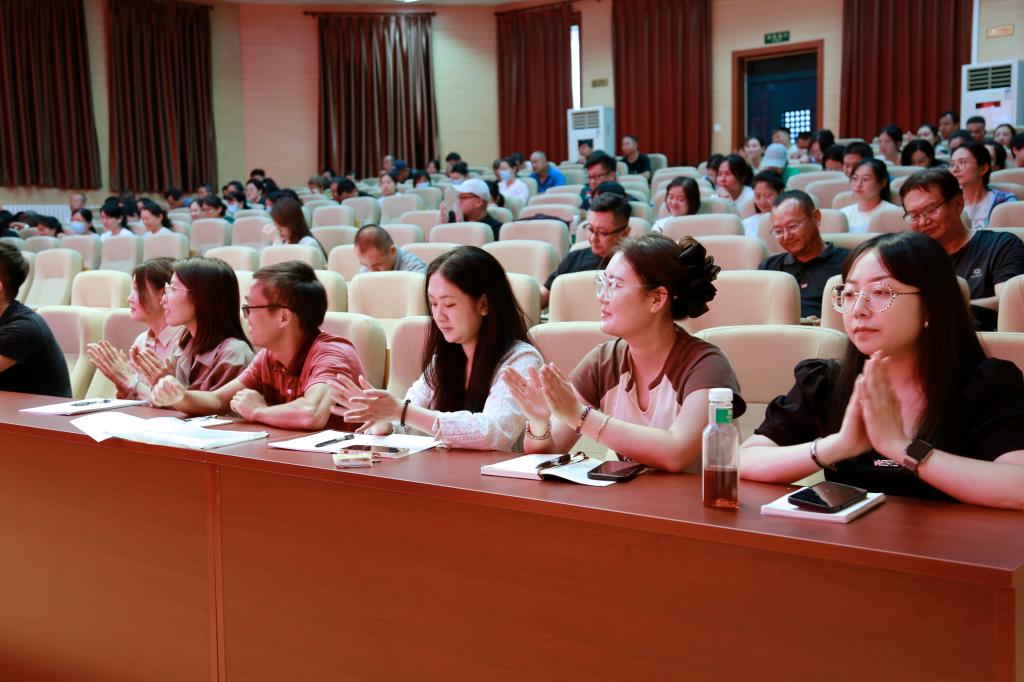 学院党委书记、院长林海波结合学院新学期新气象新形势发表了讲话。林院长从五个方面概括了学院取得的优异成绩,一是坚持高质量育人,重视技能人才培养;二是对接发展需求,专业建设精准布局;三是重视培优赋能,打造优质师资队伍;四是校企协同育人,产教融合成果丰硕;五是发挥资源优势,高效服务区域发展。针对新学期的工作,林院长提出四点要求:一是讲党性、重大局;二是讲学习、重修为;三是讲责任,重实干;四是讲内涵,重形象。