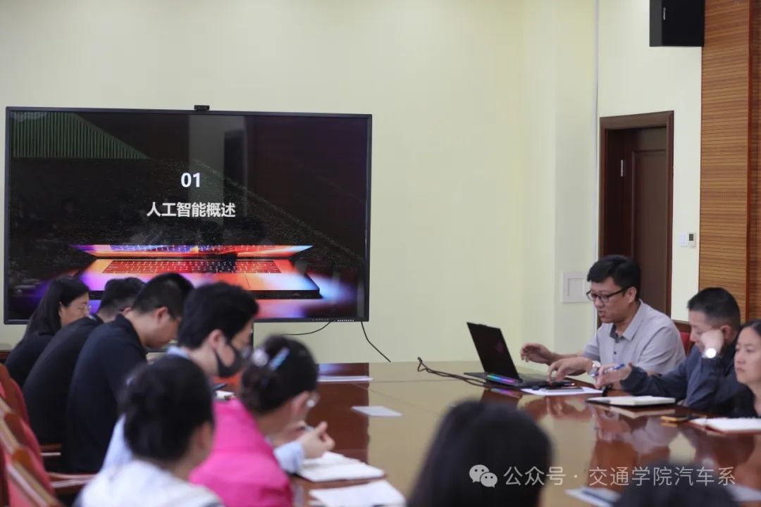 汽车系党支部书记徐国栋就“AI应用辅助教学”展开分享,现场演示的AI应用操作和成果给与会人员带来了深刻印象,生动展示了AI技术在教材编写、教案设计、PPT制作以及教学资源开发等多个教学环节的应用。这些功能不仅优化了教学流程,还显著提高了教师在教学准备和实施过程中的工作效率。