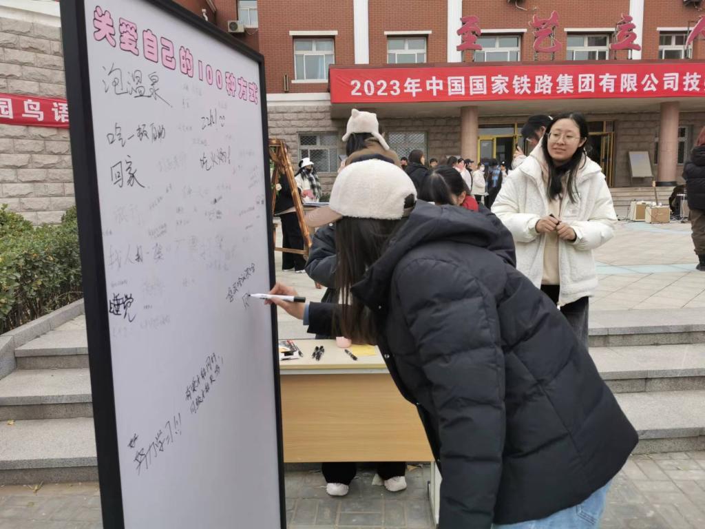今年,心理健康教育中心积极探索,创新形式,深度融合学生需求,设置四大体验区——签名打卡区、情绪释放区、能量提升区、心愿收获区,推出了有趣的户外活动,同学们游走在各项活动中,持续收获不一样的体验:在“神笔马良”活动中,同学们自由组队,在一撇一捺中体验团队的配合的力量;兼具趣味性与运动性的投篮游戏吸引很多同学pk参与,同学们以体润心,迎“篮”而上,在运动中释放压力;在“无敌风火轮”活动中,同学们互相协作、调整步伐、争分夺秒到达终点;在能量提升区,同学们通过游戏了解心理学中的“感觉统合”、共同思考“拯救脆皮大学生计划”、在“关爱自己的100种方式”征集板上留言、与自己喜欢的治愈系打call话语牌合影,并参与了条幅签字活动。在心愿收获区,同学们通过活动盖章券参与抽奖,获得暖心小礼物。活动现场,心理健康协会的同学们还为大家带来了精彩的表演,赢得了同学们热烈的掌声。此次活动集科普、启发、娱乐、体验于一体,为同学们提供了一方心灵的栖息地。