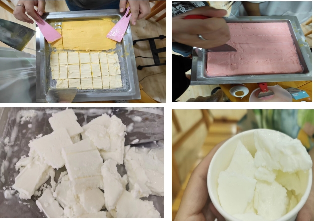 心理健康协会的志愿者向同学们介绍了炒酸奶需要的材料、工具以及方法。通过牛奶、果味酸奶粉、原味酸奶等材料调配,现场DIY体验让每一份亲自调味出的“甜品”都有自己独特的味道。在志愿者的指导下,同学们们认真地摆放着自己的炒酸奶造型,大胆地展示着自己的创意,酸甜可口的炒酸奶制作非常成功。大家都纷纷表示想要“续杯”。一句“我要再来一份!”让快乐延续,共度清凉一夏。