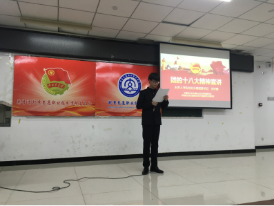 为团结动员广大团员青年深入学习团的十八大精神,决胜全面建成小康社会、实现中华民族伟大复兴的中国梦,2018年12月13日16时,在教一楼122教室我院团委组织部组织开展了团的十八大精神主题宣讲活动,由学生处处长兼团委书记刘兴鹤老师为学校团员青年们全面解读团的十八大精神。