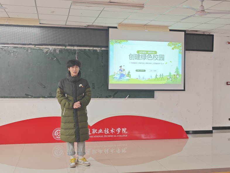 活动中,首先由团委社会实践部负责人杜嘉壕带领同学们通过PPT共同学习了绿色生态的内涵、绿色校园建设的意义、又观看了相关宣传片,帮助同学们更好的了解了相关知识。围绕“节约资源”“保护环境”“绿色低碳”“生态文明”等话题展开讨论,引导同学们深刻领会保护环境的重要性。