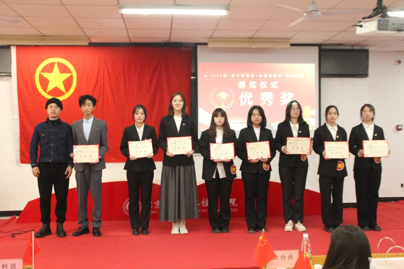 此次演讲比赛历时1个月,经过各单位初赛和学院决赛两个阶段,初赛由各系部、各团学组织参与承办,经层层选拔,共有14位选手进入本次比赛决赛,决赛由团委宣传部组织推进。比赛中,选手们依次亮相展现风采,他们意气风发、青春激扬,语言生动、情绪饱满、事例鲜活,紧扣“爱国情怀”“国防”“青年担当”等主题,表达了大力弘扬以爱国主义为核心的中华民族精神的信念与决心。用各自独特的风格、独到的见解,紧密结合自身学习经历和理论学习成果,以真挚的感情讲述真实的故事,充分展现身边涌现出的先进典型、先进经验以及青年担当作为的感人事。一字一句、一招一式,深刻彰显出青年一代的责任和担当,坚定的语言,动人的故事,崇高的精神,感染着在场的每一位观众,让青春之声流入每个人的心中。比赛现场气氛热烈、掌声不断。选手们立下勇做时代弄潮儿的豪情壮志,号召同学们怀赤诚之心、立鸿鹄之志,争做有理想、敢担当、能吃苦、肯奋斗的新时代好青年,在砥砺奋进中贡献青春力量、实现人生价值。比赛现场气氛热烈、掌声不断。经过一番激烈角逐,最终,来自轨道交通系2023级运营班吴佳益同学荣获一等奖,汽车系2023级无人机班的王一涵同学和2023级信息安全班的温馨仪同学荣获二等奖,管理系2023级旅游班的于美婕、汽车系2023级计算机班的张琳晗、孙志浩荣获三等奖,其余同学荣获优秀奖。