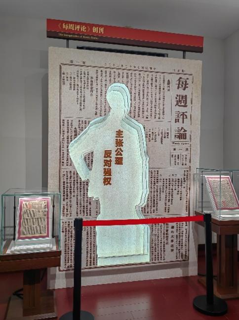随后,学员们踏足红楼,开始了他们的参观之旅。他们依次浏览了陈独秀文科学长室,李大钊图书馆主任室,毛泽东曾辛勤工作的第二阅览室,以及充满青春气息五四游行筹备室。这些展厅中陈列的《共产党宣言》、《狂人日记》《每周评论》等红色文献和历史遗迹,都深深触动了学子们的心灵。他们以此缅怀革命先驱们的丰功伟绩,深刻感受烈士英雄的爱国情怀。