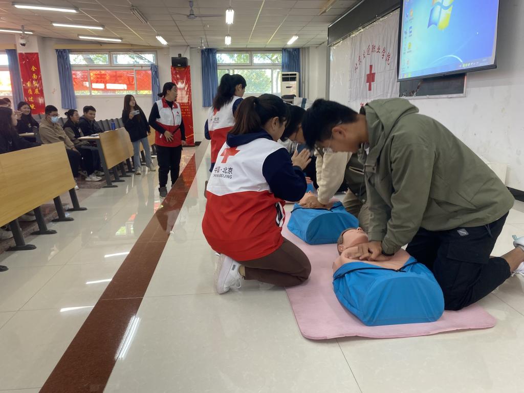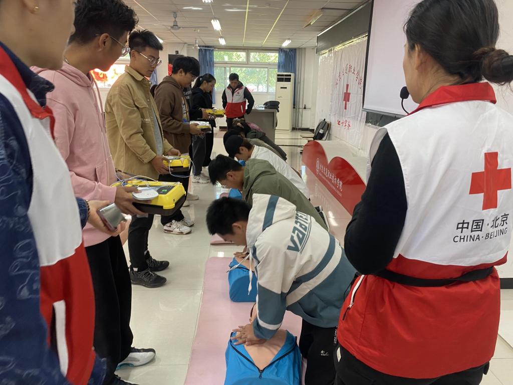 应急知识记心间,健康校园每一天。为打造安全健康校园,加强大学生生命安全教育,增强急救意识普及应急救护知识,提高安全防范意识和应急处置能力。2023年10月21日上午,伟德国际1949官网团委、学院红十字会联合学院总务处医务室特邀昌平区红十字会到我院开展心肺复苏(CPR)和自动体外除颤仪(AED)使用学习和急救知识培训活动。旨在加强学生们的自我保护意识,提高应急救护知识、自救互救技能以及紧急情况的处理能力,大力弘扬红十字会精神。
