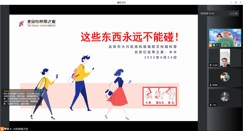 为广泛传播“健康人生、绿色无毒”理念,以实际行动迎接党的二十大胜利召开,昌平区疾控中心特别邀请医科大学附属地坛医院专家和北京红丝带之家五星志愿者,针对辖区高校大学生开展禁毒防艾知识讲座。我院红十字会积极参与本次活动,以提高我院师生树立正确防范意识,加强校园禁毒知识及艾滋病防治科普。