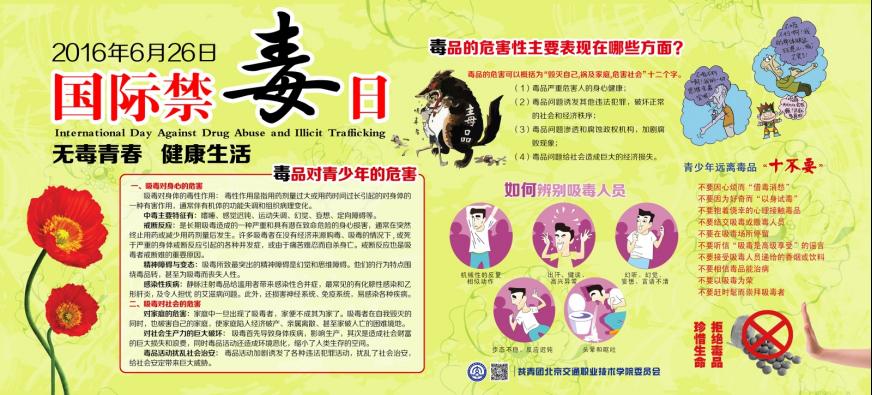 为进一步提高学生对毒品的防范意识,号召大家抵制毒品、远离毒品,在“6·26”国际禁毒日来临之前,伟德国际1949官网团委开展了“无毒青春,健康生活”为主题的禁毒宣传教育活动。