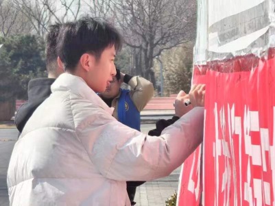 为弘扬生态文明,共建绿色校园,增强我院师生的节约用水及保护水资源意识,在学院总务处的指导下,学院环保社组织志愿者协助基建水电维修科于2024年3月22日中午在教一楼门口开展第2024年“世界水日”“中国水周”横幅签名宣传活动。