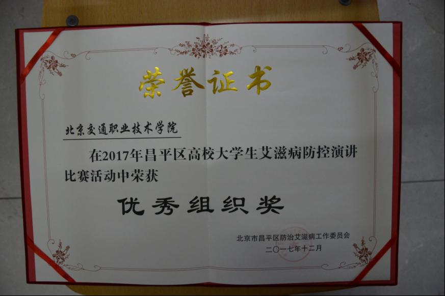12月1日世界预防艾滋病日来临之际,昌平区防治艾滋病工作委员会于11月24日举办昌平区大学生艾滋病防控演讲预赛活动。我院团委积极响应活动号召,通过校内选拔,认真审稿,强化培训,选派张冰(2017级管理系空中乘务专业)和刘蕙菲(2017级管理系空中乘务专业)两名同学参加此次活动。最终,我院两名同学荣获优秀奖,我院被授予“优秀组织奖”荣誉。