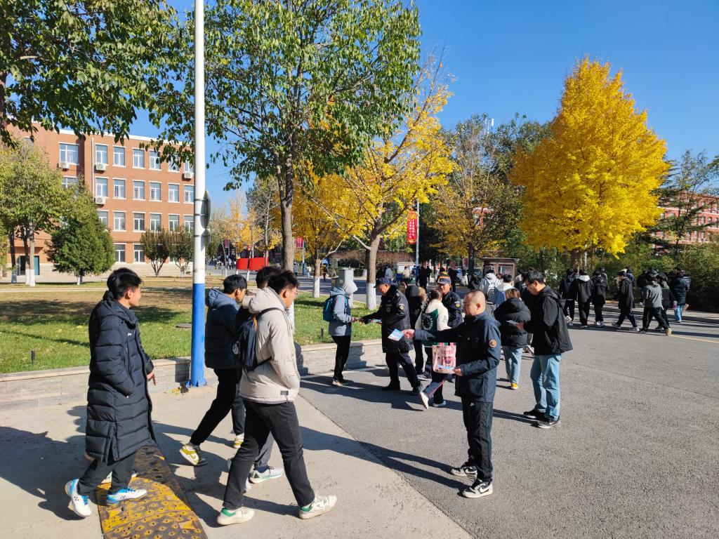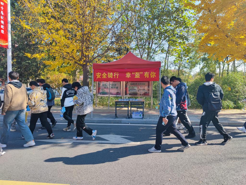 为进一步增强师生员工的交通安全意识、守法意识和文明出行意识,落实京教函【2024】521号和《2024年电动自行车安全佩戴头盔行动的工作方案》文件精神,11月6日上午,学院保卫处在校园内开展了现场宣传引导倡议活动。我们立足学院工作实际,多形式、多渠道、全方位深入开展“一盔一带”安全宣传教育工作。