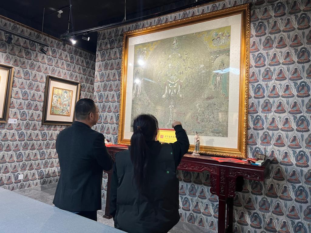 张总代表公司对杨文生主任一行来访表示热烈欢迎,她介绍龙博天空科技有限公司是由北京京西时代科技有限公司、北京李东方文化艺术中心、北京市云知博职业技能培训公司共同组建,以区块链技术深入保护和发展中华文明基因库的WEB3.0科技公司,公司以“传承中华文明基因,扩大中华文化影响”为愿景,聚焦文化IP数字资产评估、IP数字化标准和体系的探索,在文物数字化、李东方珂罗版非遗技艺、流动敦煌IP、元宇宙、文创产品研发、大学生创新创业、现代职业教育培训等方面取得的成就。