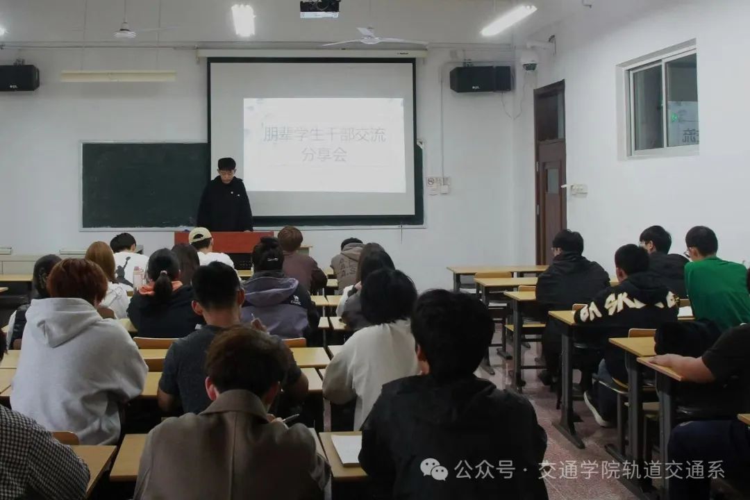 为充分发挥朋辈榜样引领作用,及时解决同学们对于学生工作方面的疑问与困惑,适应同学们对于学生干部的身份转变,提升学生综合能力,帮助学生合理制定成长规划,轨道交通系的朋辈学生干部交流分享会于2024年10月9日星期三,在教一楼405举行。众多学生干部齐聚一堂,共同分享经验、交流心得,为提升学生工作水平注入新的活力。