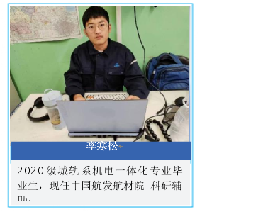 2020级城轨系机电一体化专业毕业生,现任中国航发航材院 科研辅助