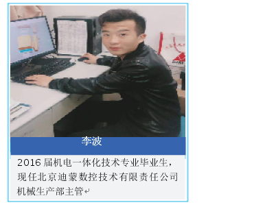 2016届机电一体化技术专业毕业生,现任北京迪蒙数控技术有限责任公司机械生产部主管