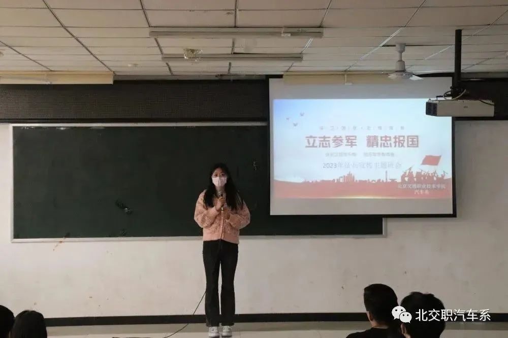 大会由魏花叶同学向同学们介绍了军队的特点、要求和招募政策,以及部队的训练生活和岗位职责,让同学们对军队有了更深入的了解。