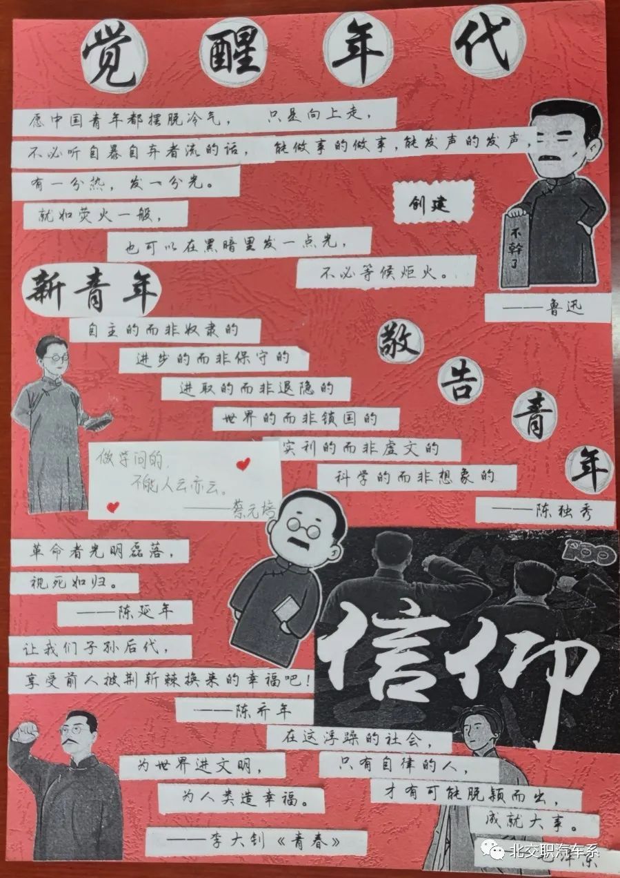 在百年未有之变局的新时期,我们仍离不开对民族文化精神的学习与传承。通过此次“五四”主题拼贴诗活动,同学们意识到在美好的青春里,要做新时代的读书人、奋斗者,腹有书香气自华,志存高远,脚踏实地,拼搏奋进。