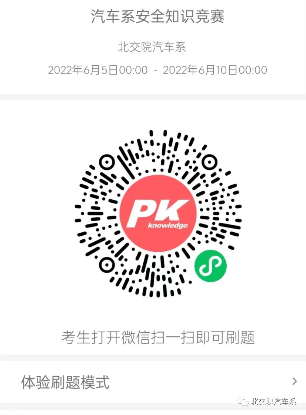 扫描二维码参与汽车系知识竞赛答题