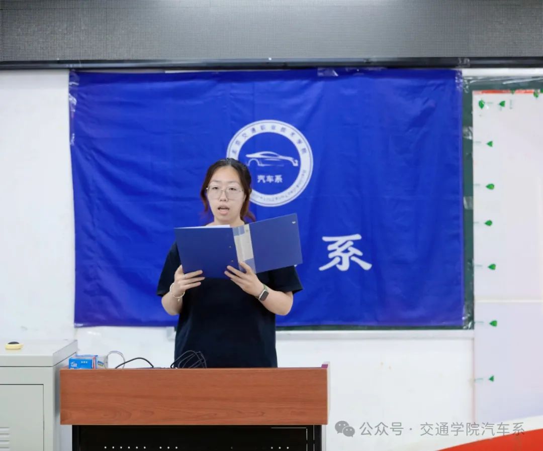 接下来由王圣洁老师宣读23级学生干部竞选结果,随后新任组织部部长靳傲宇同学代表全体新任团总支学生会成员进行发言。靳傲宇同学表示,他们作为接班人要始终保持积极态度,十足的干劲。相信在他们的带领和努力下,汽车系将迎来更好的明天,走向新的辉煌。