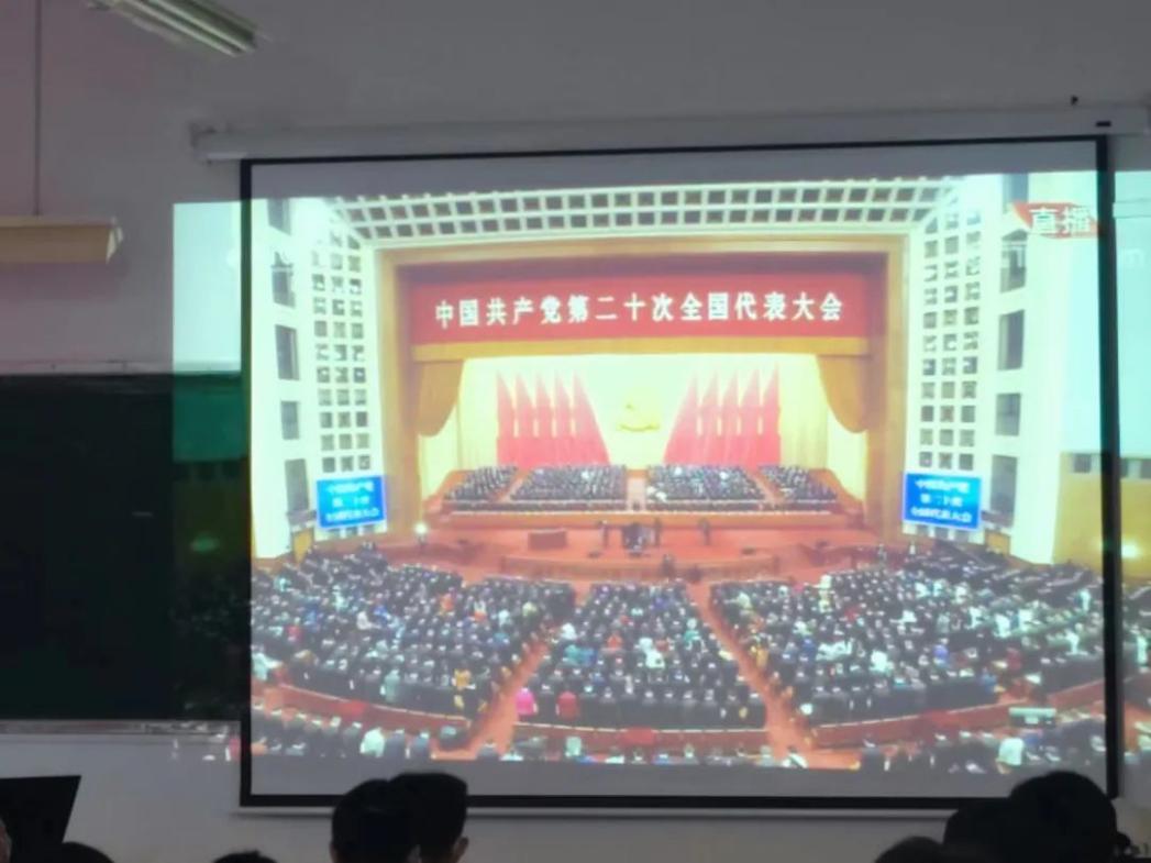 在观看直播现场,同学们都着装得体、精神饱满,通过观看二十大开幕盛况,身临其境学习二十大精神内涵,深刻认识和理解新时代的伟大成就,感悟新时代的磅礴力量,为学习党的二十大精神营造浓厚氛围,为更好构筑中国精神、中国价值、中国力量提供青年保障。
