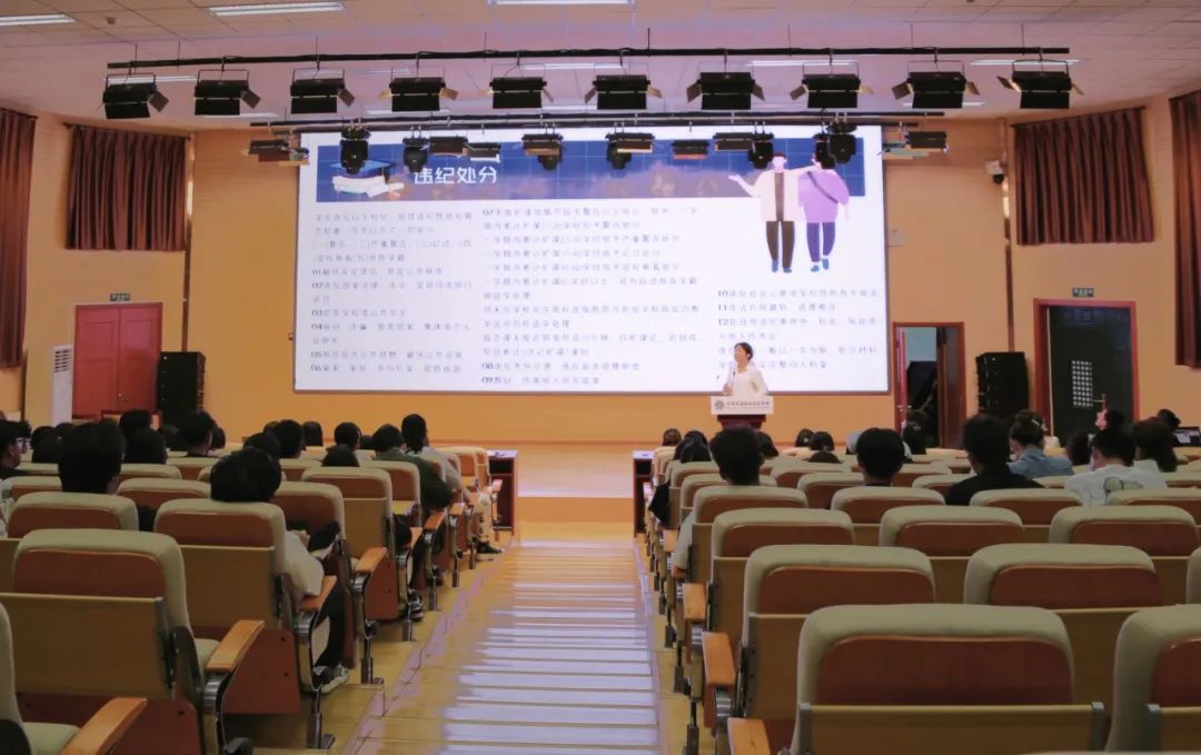 9月19日下午,我系于教二楼报告厅开展2023级新生入学教育讲座,管理系党支部书记滕辉、班主任刘睿与管理系全体学生一同参加了本次活动。