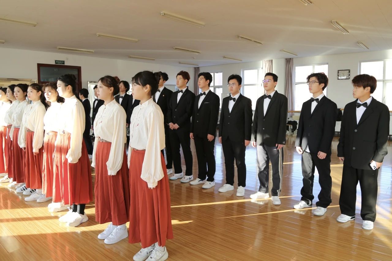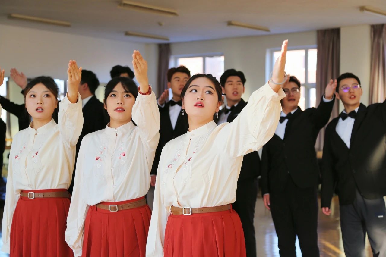管理系对此次比赛极为重视,赛前精心筹备。指导老师精选曲目,校歌凸显“至艺立人”特色,传递学院教育理念与人文关怀,《绒花》借悠扬旋律抒发爱国情。在同学们积极利用课余排练的同时,大二的学生们也主动承担起了为合唱团化妆的任务。