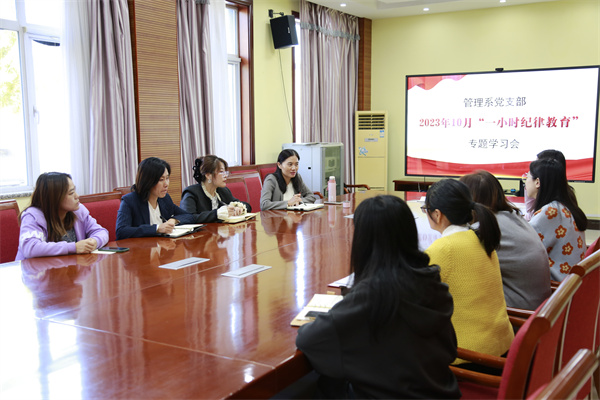 2023年10月19日下午, 根据院党委对学习贯彻习近平新时代中国特色社会主义思想主题教育部署方案,管理系党支部组织全体党员开展了学习贯彻习近平文化思想的专题学习。