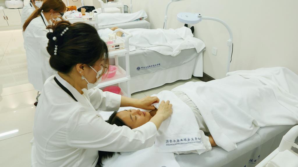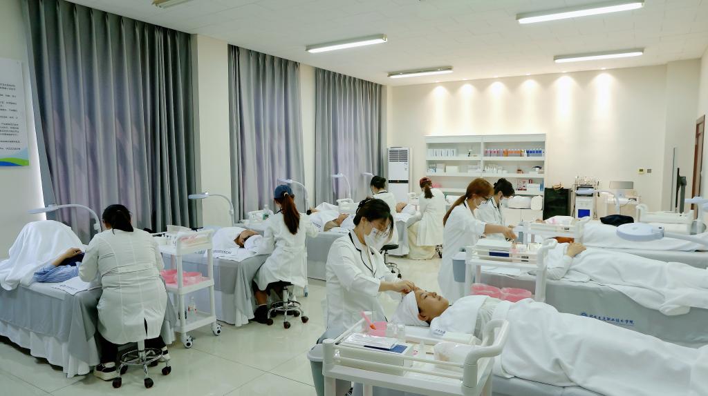 座谈交流结束后,与会人员移步至三层皮肤管理教学实践中心,进行教学成果体验交流--由管理系化妆品经营与管理专业的师生为汽车系党支部的女党员同志提供专业的面部皮肤护理服务。体验结束后,管理系党支部书记滕辉表示,感谢汽车系各位党员同志根据自身的体验感受提出的宝贵意见和建议,不仅为学生提供了一次难得的实践机会,同时还共同提升了化妆品经营与管理专业的服务水平。