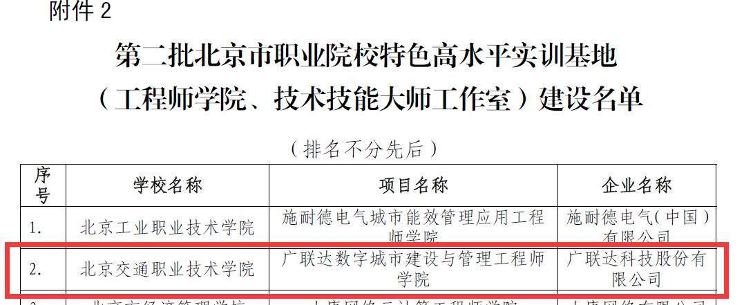 9月28日,北京市教育委员会和北京市人力资源和社会保障局正式公布第二批北京市职业院校特色高水平实训基地(工程师学院、技术技能大师工作室)建设名单,我院申报的“广联达数字城市建设与管理工程师学院”成功入选!